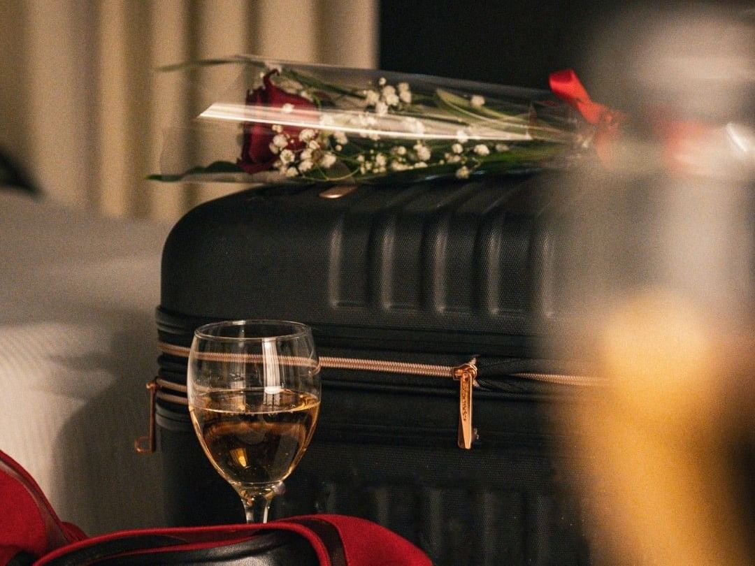 Package includes room upgrade, sparkling wine and seet treat.